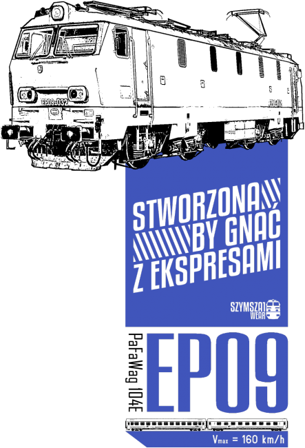 Plakat z lokomotywą EP09, którą można krótko opisać hasłem Stworzona by gnać z ekspresami.