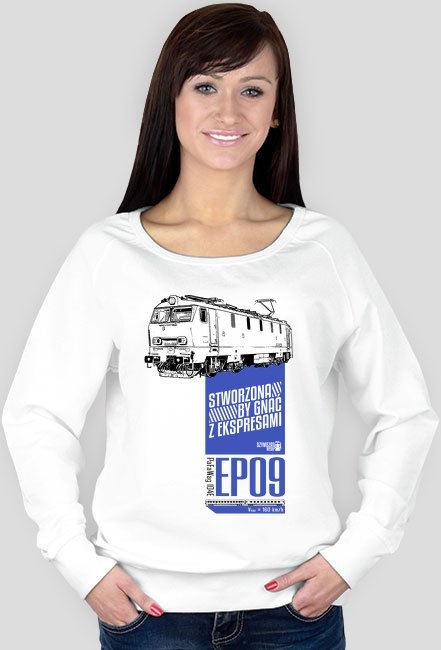 Bluza damska z lokomotywą EP09, którą można krótko opisać hasłem Stworzona by gnać z ekspresami.